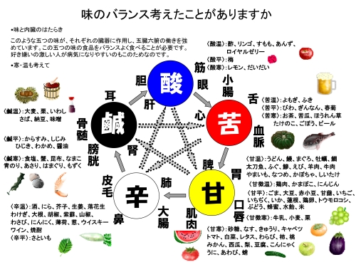 これまで、季節の起こりやすい症状や養生法をお話してきました。春は苦みの山菜に、夏は水分たっぷりの野菜、秋は肺を潤す果物、冬は体を温める根菜とそれぞれの季節に摂りたい食材があります。しかし、食養生は、それだけ摂っていればいいわけではありません。五味(酸味、苦味、甘味、辛味、鹹味(塩辛い))をバランスよく摂ることが大切です。そのバランスが優れているのが、日本の伝統食です。一つの汁物と一つの主菜、二つの副菜の「一汁三菜」で、五味のバランスが摂れるようになっているのです。それらの食材は、季節ごとに変化し、その季節にとれた旬の食材で飾られます。