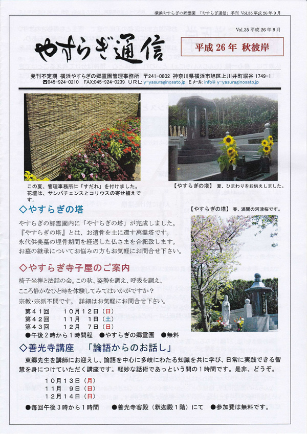 9月にスタートしたやすらぎの郷霊園の「やすらぎ通信」のコラム第2弾です!